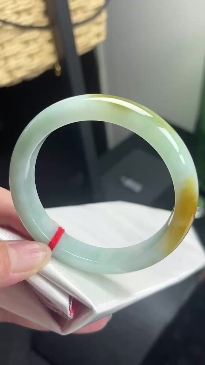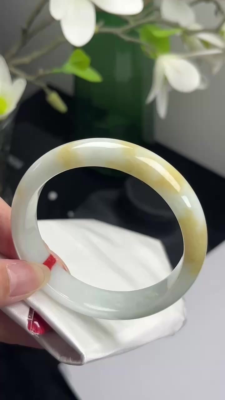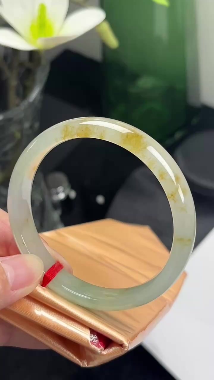 $:8800,特色黄加绿底正圈手镯, 圈口:58.6-12.1-8.1