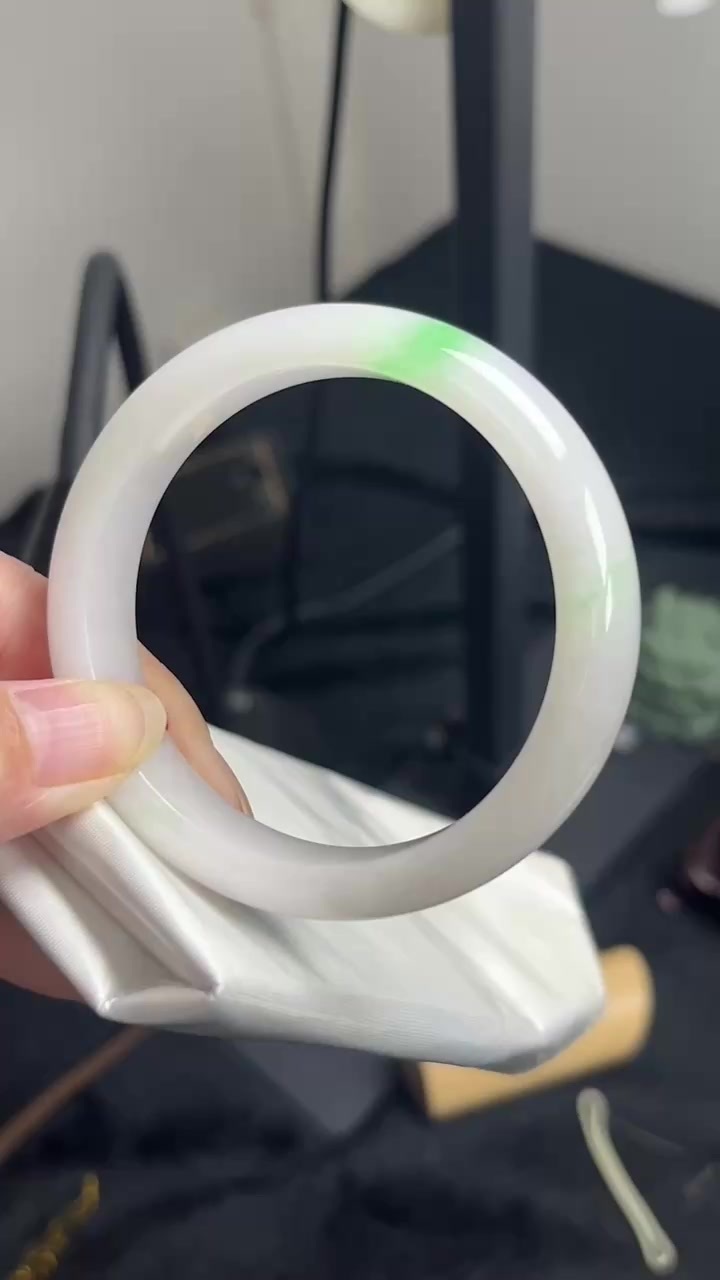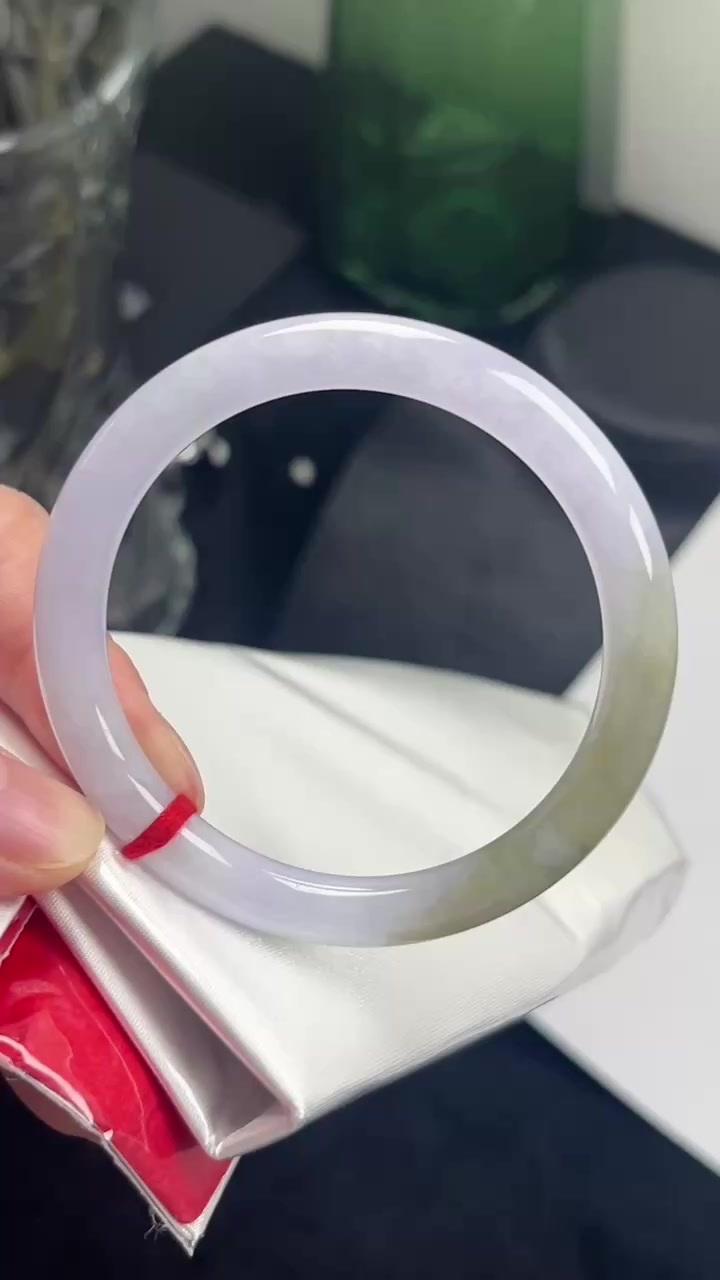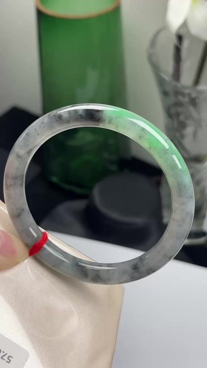 $:3000,一半绿底一半白底贵妃手镯,圈口:52.3-47.4-12.1-6.2,50圈口可佩戴