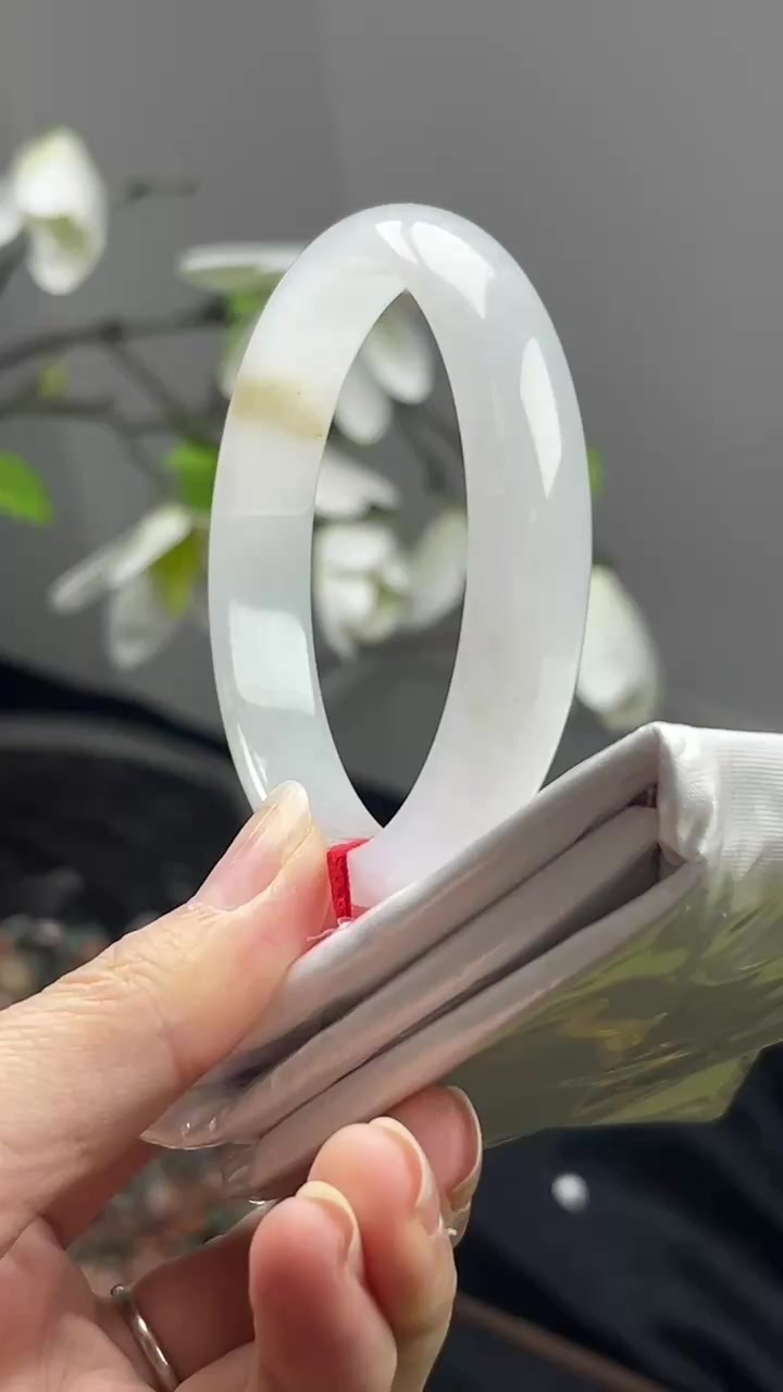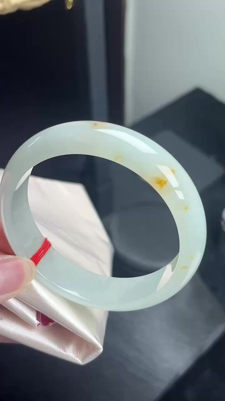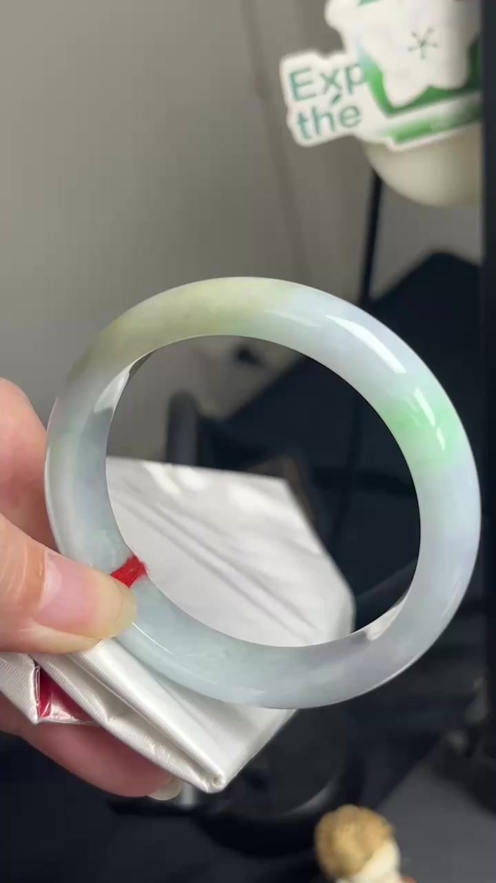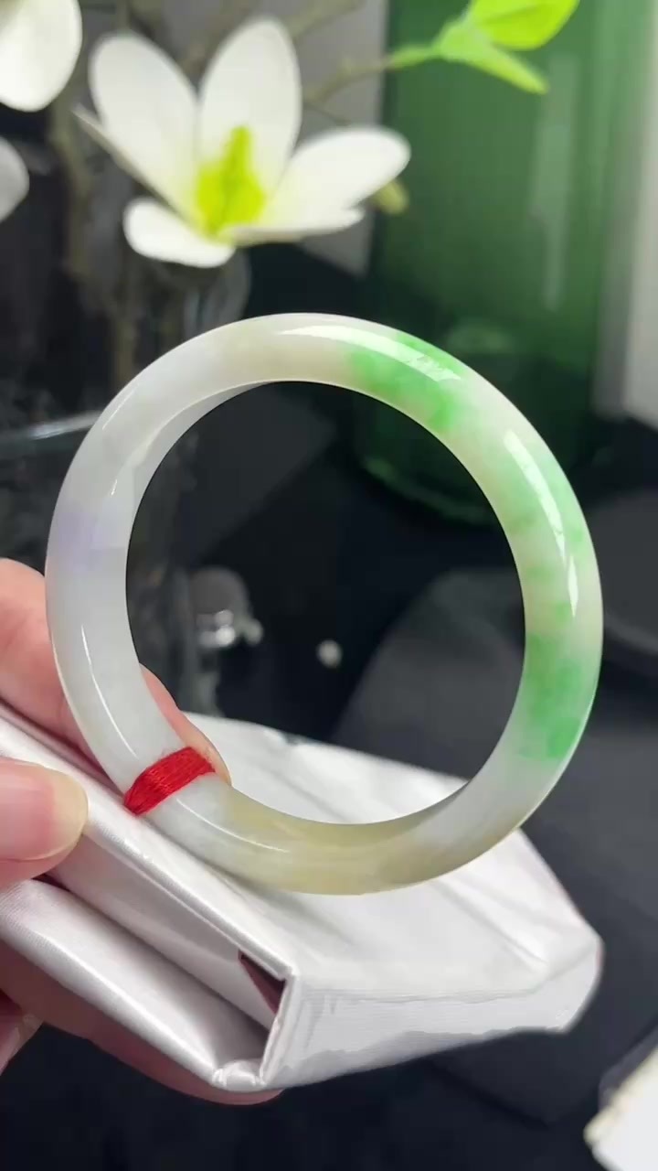 $:3000,一半绿底一半白底贵妃手镯,圈口:52.3-47.4-12.1-6.2,50圈口可佩戴