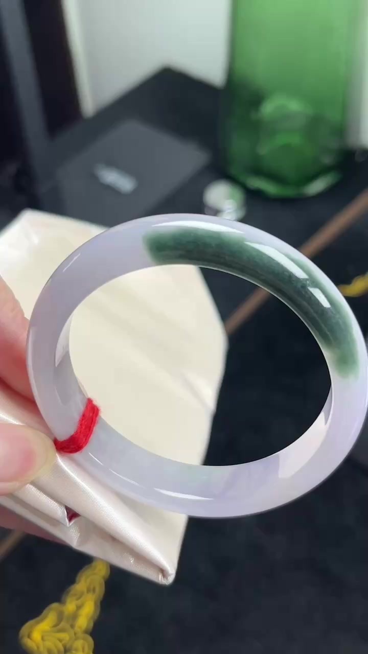 $:4980,淡紫底带绿正圈手镯,圈口:56.1-12.8-7.6