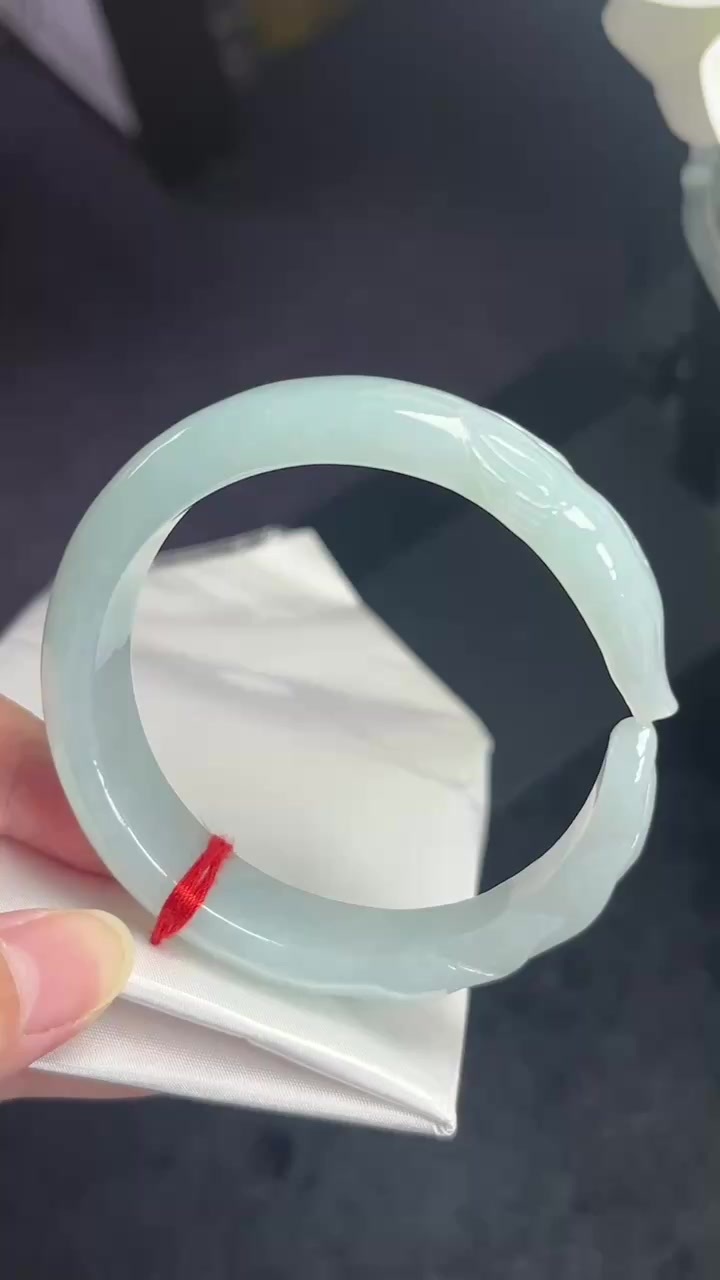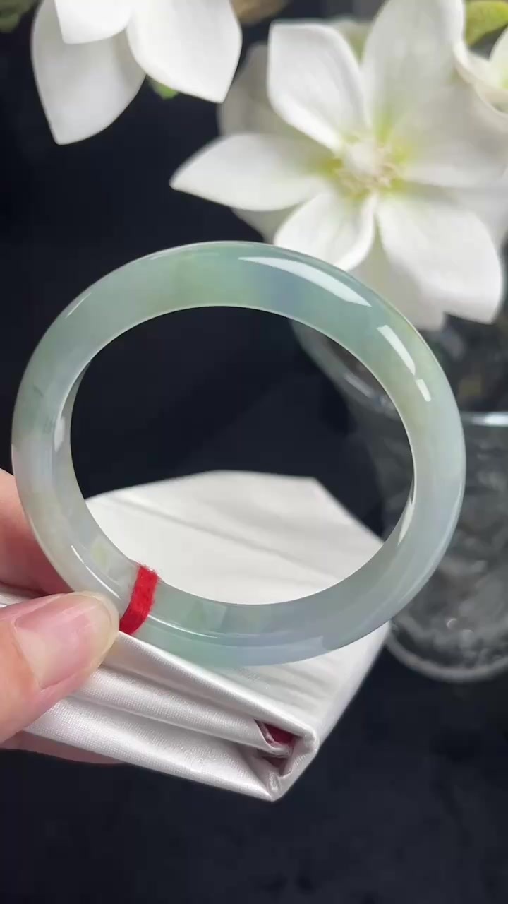 $:3000,一半绿底一半白底贵妃手镯,圈口:52.3-47.4-12.1-6.2,50圈口可佩戴