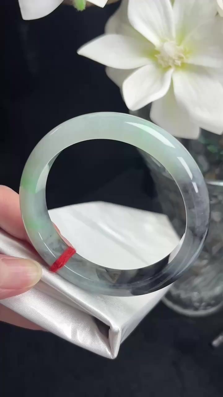 $:4500,乌鸡飘绿正圈手镯,圈口:57.4-12.7-7.9