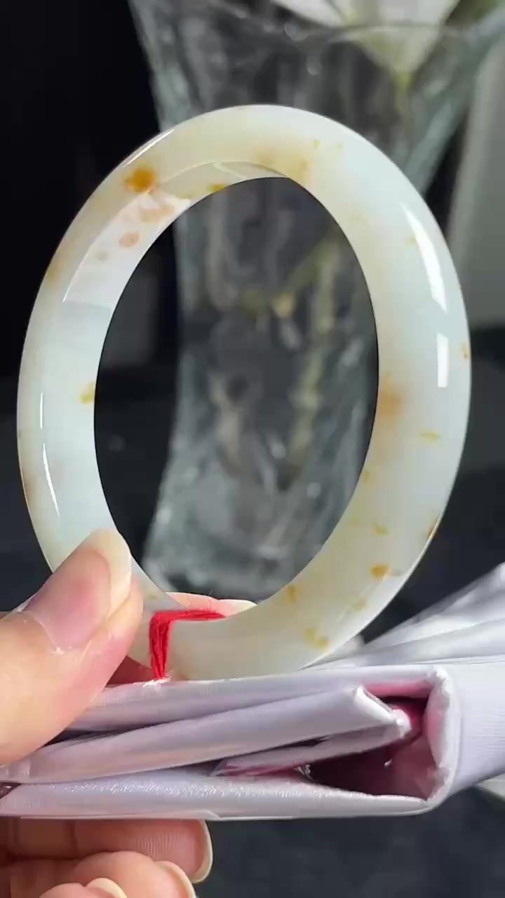 $:3500,白底飘花正圈手镯,圈口:58.2-11.7-8.0