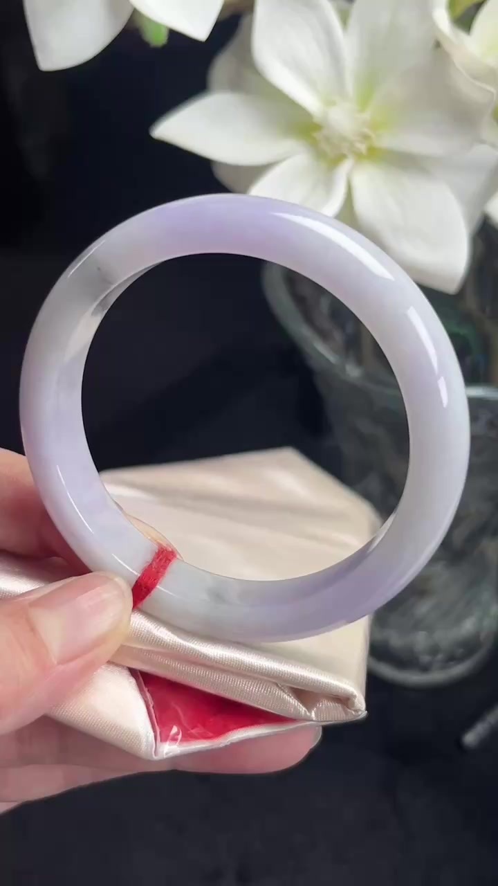 $:4980,淡紫底带绿正圈手镯,圈口:56.1-12.8-7.6