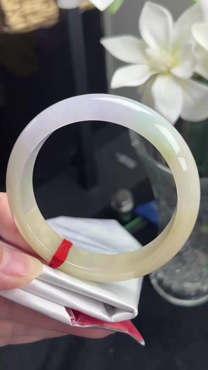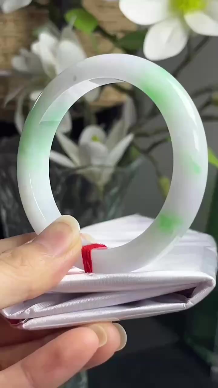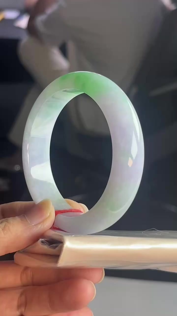 $:14800,淡紫底飘绿正圈手镯,圈口:55.6-14.7-7.7